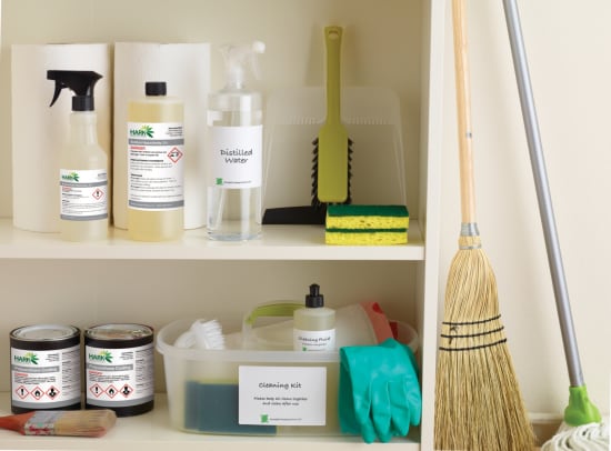 Many common office cleaners contain chemicals and toxic substances. They can become a dangerous health hazard if handled improperly. If the original product packaging doesn’t clearly depict the risks, create your own safety and warning labels with software such as the free Avery Design & Print GHS Wizard. Call out what’s important to you, such as the number to poison control or a pictogram detailing what to do in case of accidental exposure.